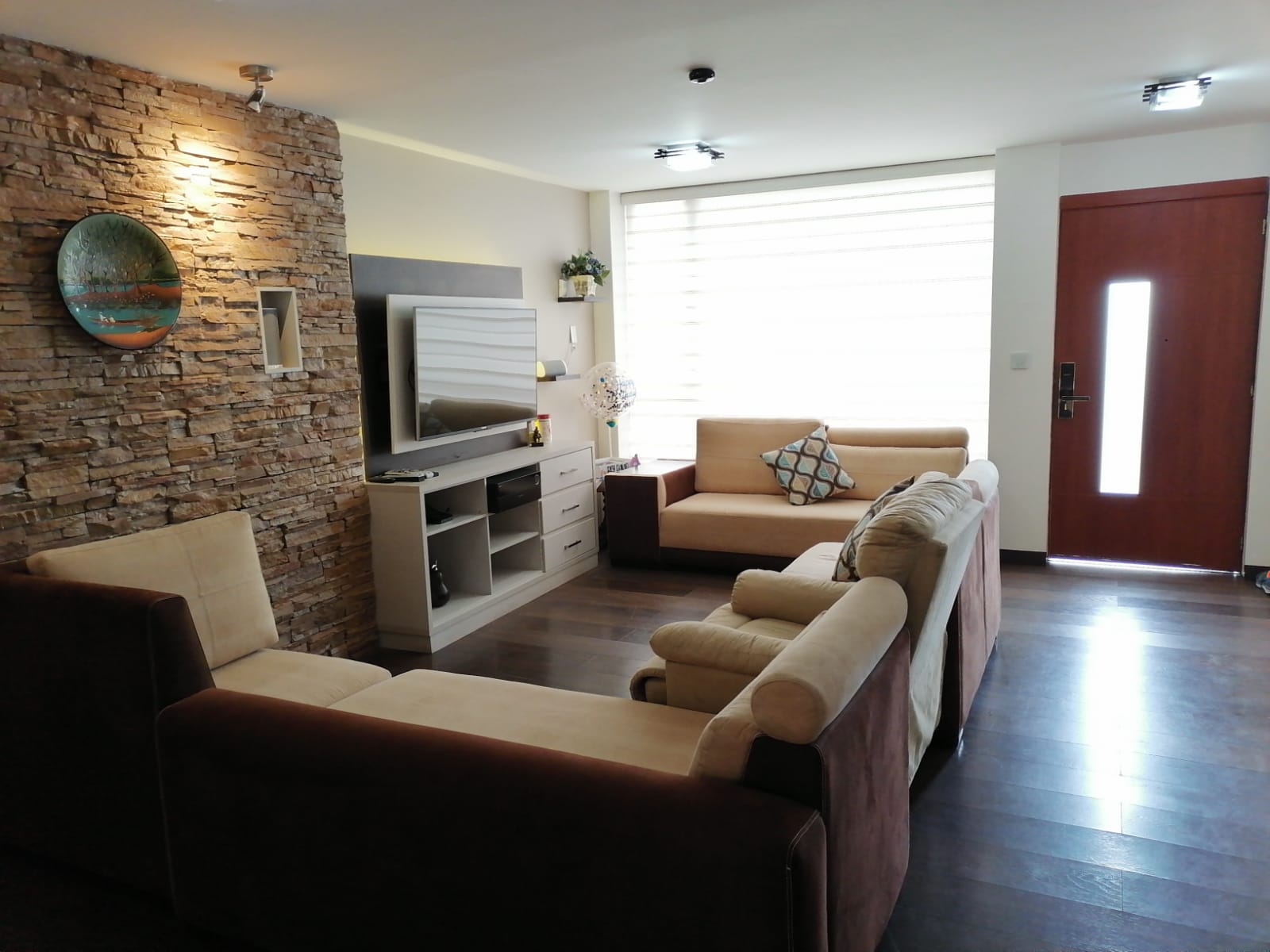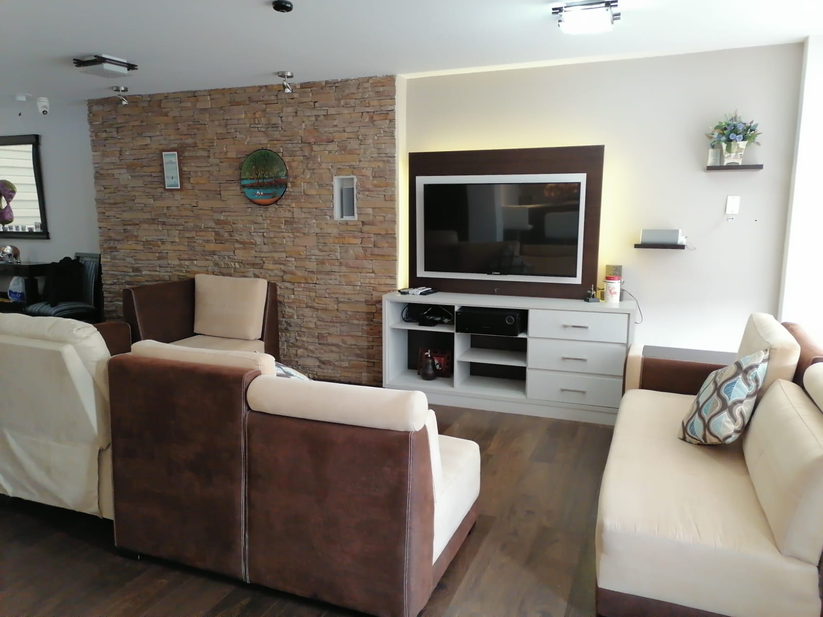 Hermosa Casa, ubicada en excelente sector del Sur de la ciudad tiene 143 mts de construcción y 188 mts de terreno: ️Planta Baja: Sala con mueble empotrado para TV (con brazo giratorio) y adaptación para cine en casa Bar con acabados de lujo Comedor Cocina Baño social con bodega cuarto de máquinas Lavandería con cubierta con pérgola Calefón a gas Planta alta: 1 dormitorio máster con baño completo privado y walking closet 2 dormitorios adicionales con baño completo compartido amplio hall de descanso o sala de star ️Amplia terraza con instalaciones para construcción de un cuarto completo adicional. La casa está domotizada, tiene piso flotante alemán de alto tráfico. Tiene también cisterna grande de agua. Está ubicada en un conjunto privado el cual tiene cercado eléctrico y cámaras de seguridad y cisterna. Tiene 2 parqueaderos particulares y 2 de visita, se encuentra ubicada en zona estratégica de la ciudad: cerca del Municipio, UTA, PUCE, Consejo de la Judicatura, nuevo Terminal Terrestre.
