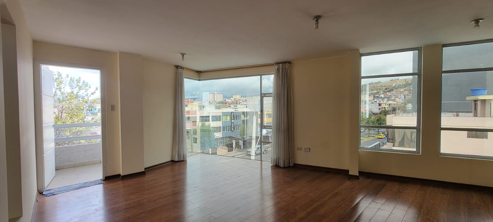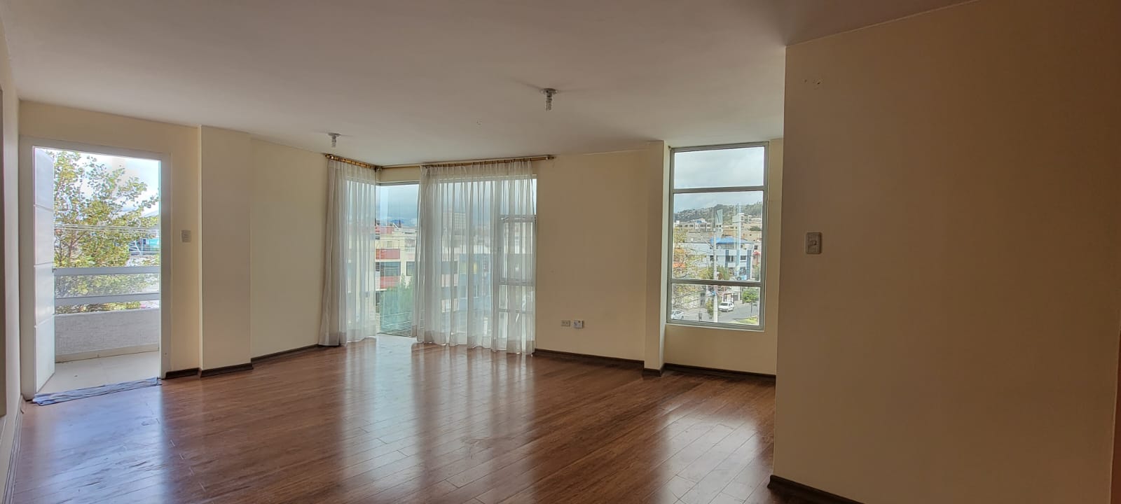 Hermoso departamento, ubicado en el piso 3, dispone de: Tres habitaciones, una máster y dos con baño compartido, sala, comedor, cocina, baño social, lavandería, cisterna, balcón y garage para 1 auto. Cerca del Mall de los Andes, Universidad Técnica campus Huachi, instituciones financieras y unidades educativas.